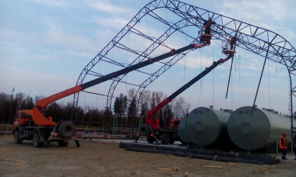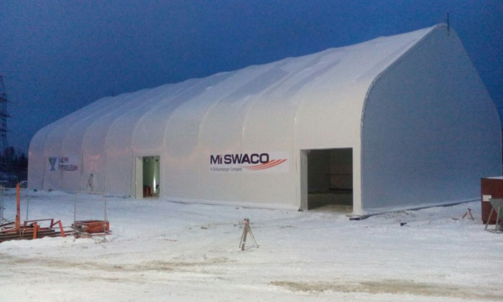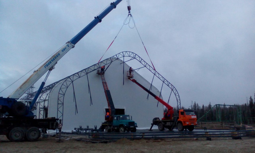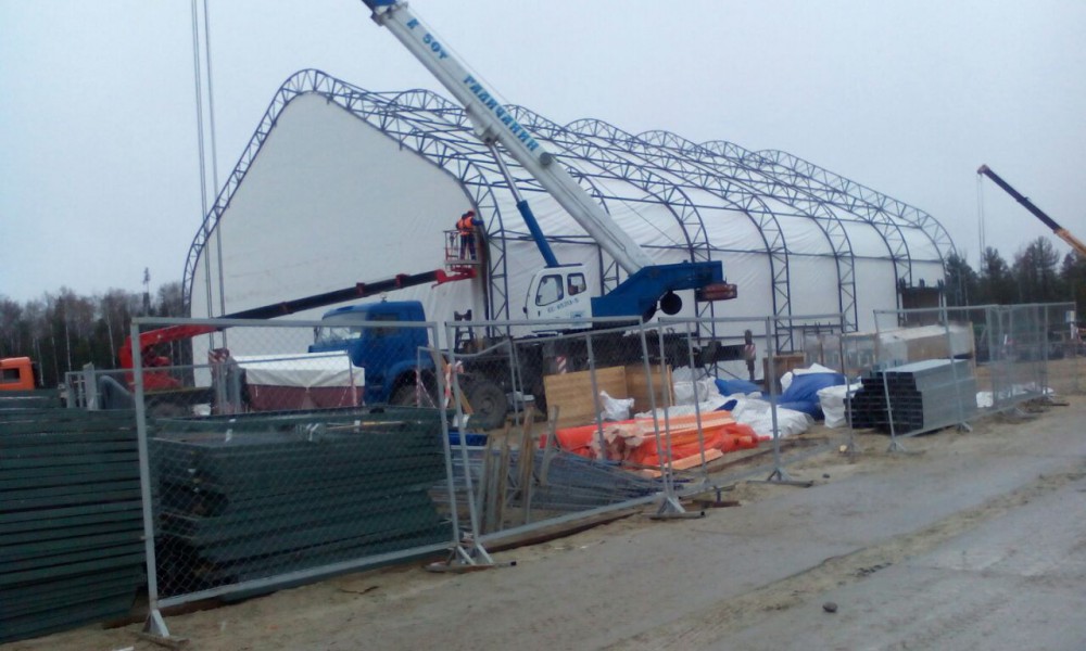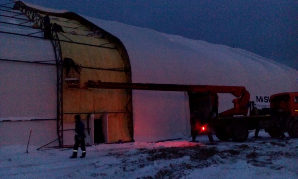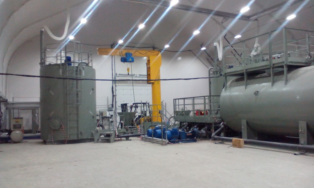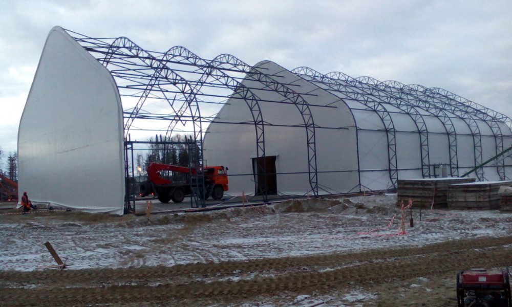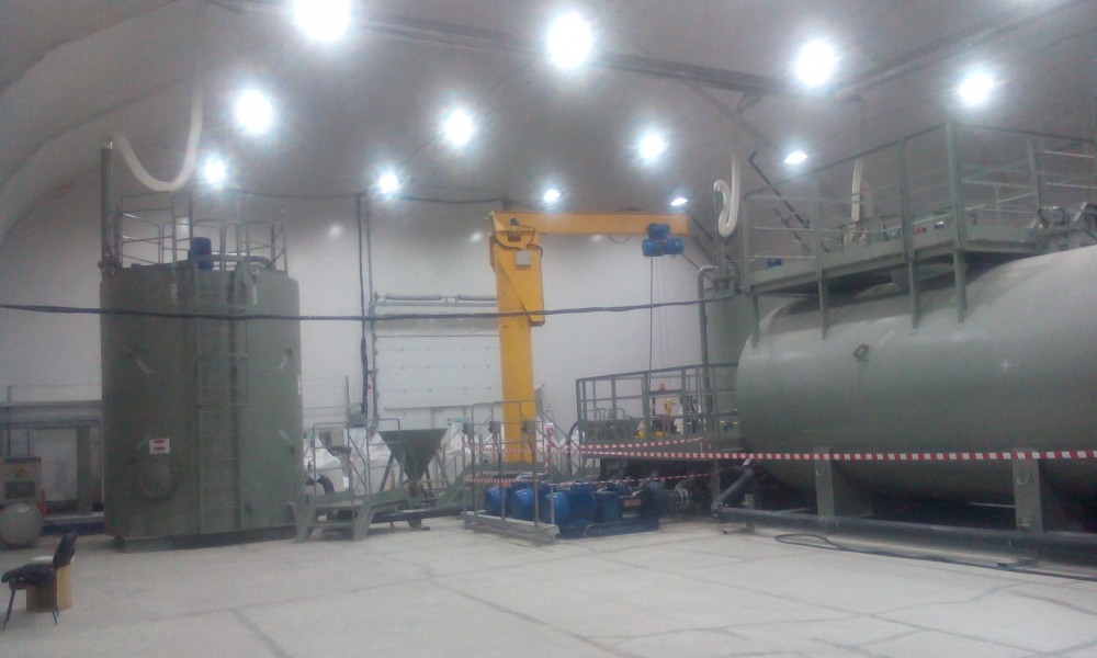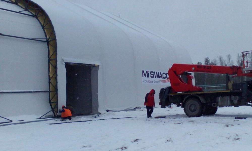 В утепленном каркасно-тентовом ангаре 51х24х13,6м., смонтированном специалистами ООО "ЗТК "Технострой-Сервис", были выполнены строительно-монтажные работы по монтажу, установке и пуско-наладке технологического оборудования для нефтяной компании. Выполнен полный цикл работ "под ключ" от возведения до запуска Завода по производству бурового цементного раствора.