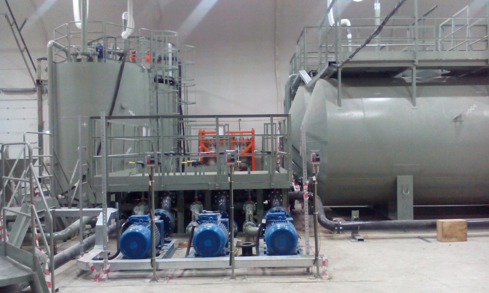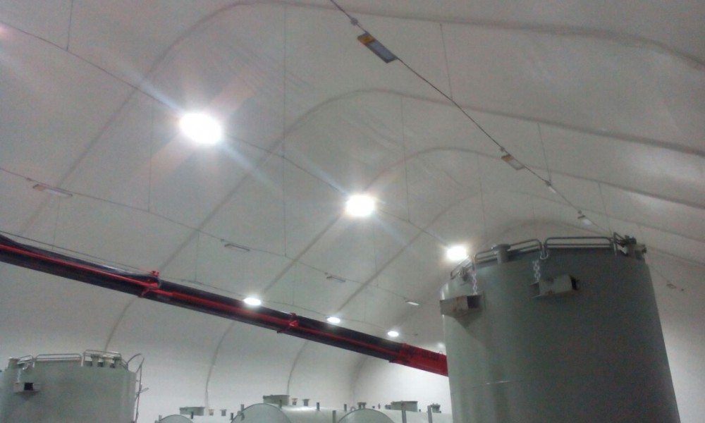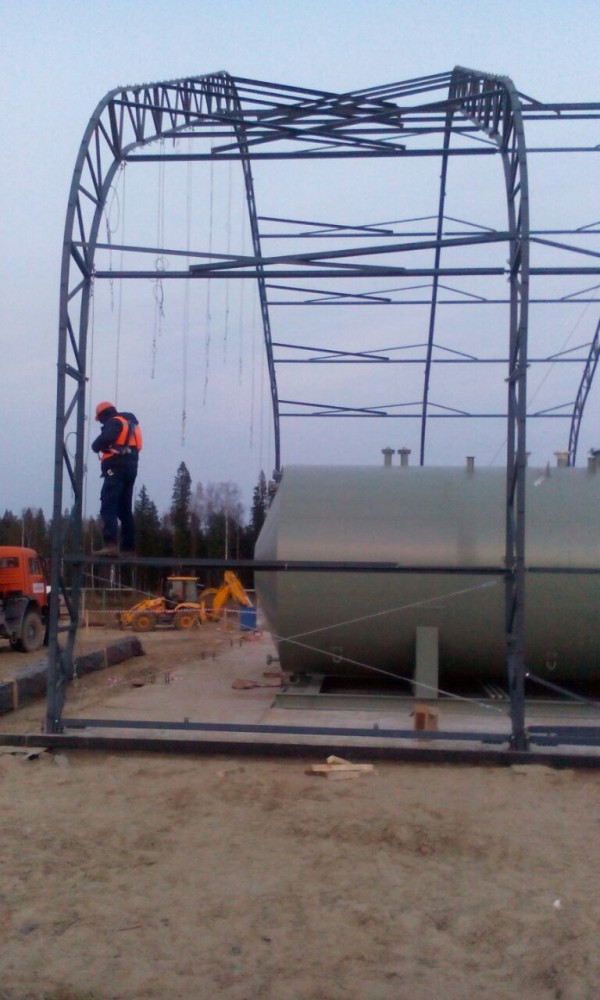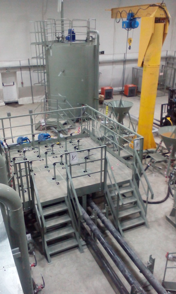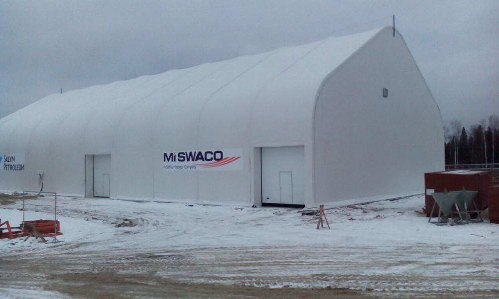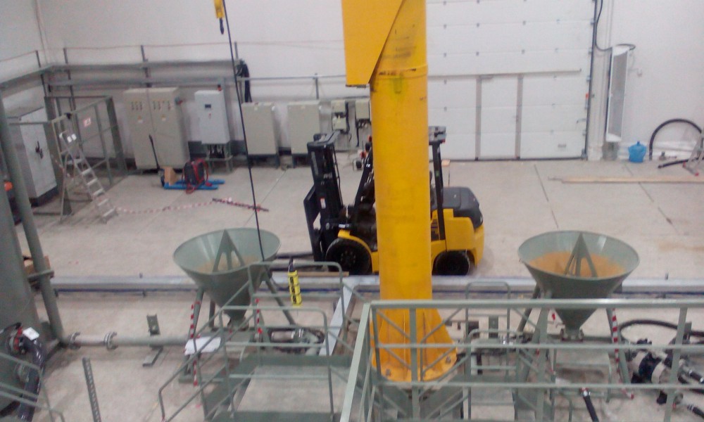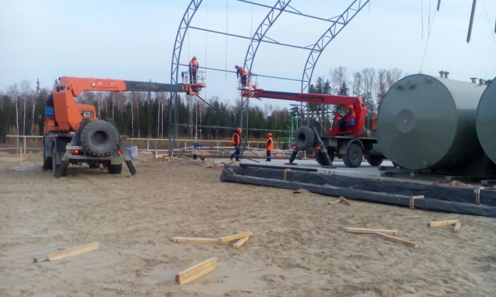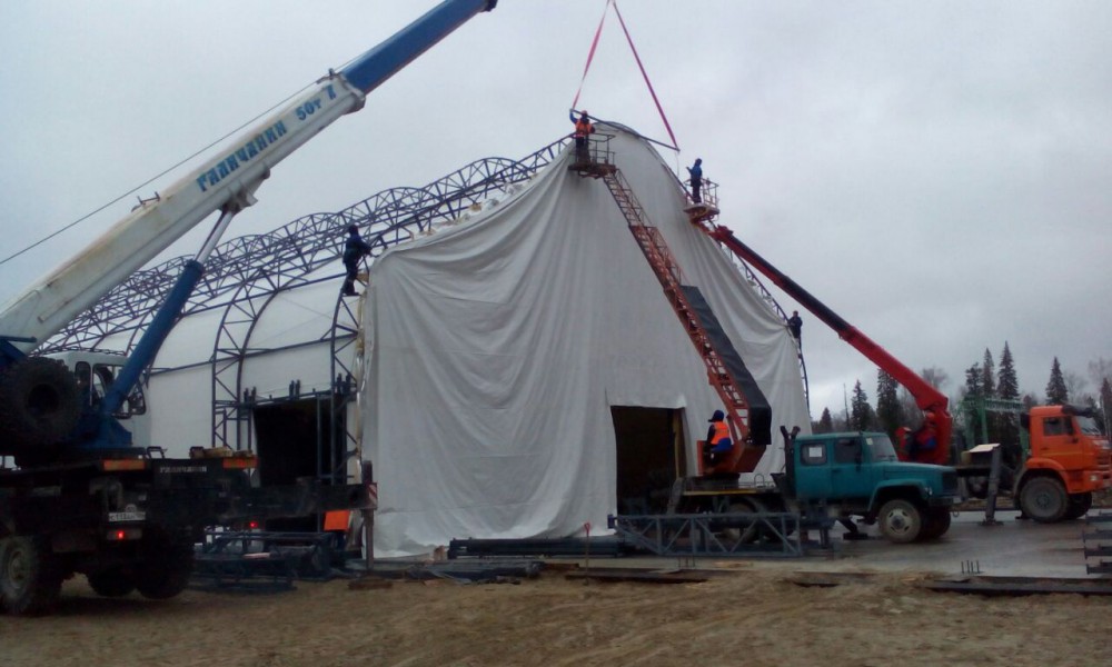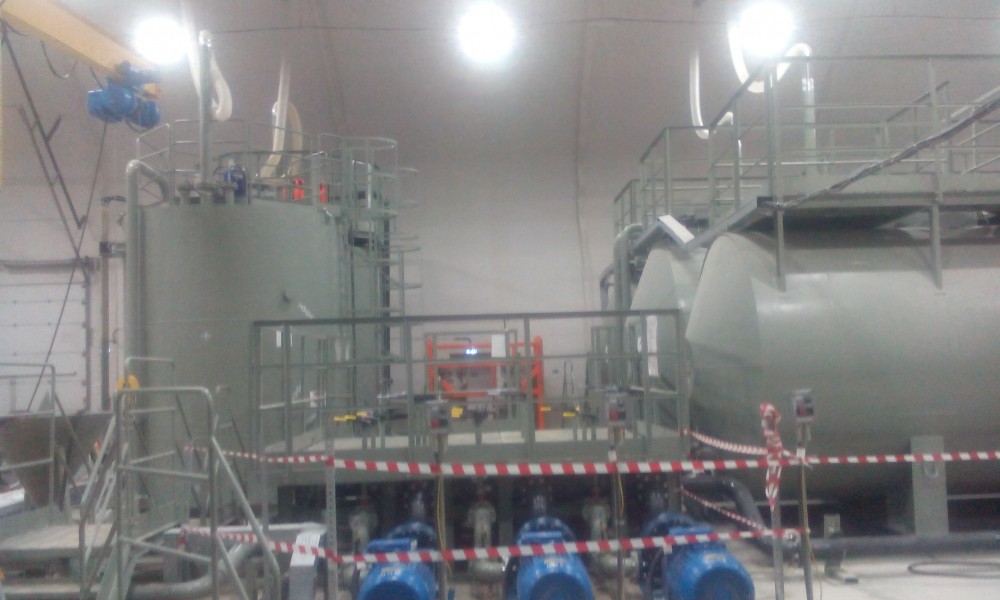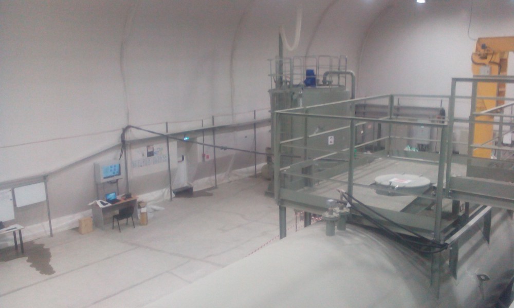 В утепленном каркасно-тентовом ангаре 51х24х13,6м., смонтированном специалистами ООО "ЗТК "Технострой-Сервис", были выполнены строительно-монтажные работы по монтажу, установке и пуско-наладке технологического оборудования для нефтяной компании. Выполнен полный цикл работ "под ключ" от возведения до запуска Завода по производству бурового цементного раствора.